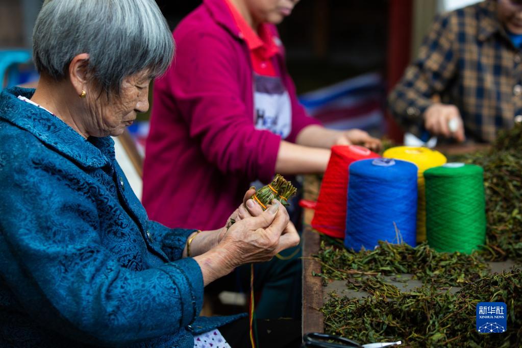 谷雨時(shí)節,福建省武夷山市進(jìn)入忙碌的采茶制茶季,龍須茶也開(kāi)始制作。龍須茶是純手工茶,村民們把整理好的條形茶葉用代表陰陽(yáng)五行的五種彩色絲線(xiàn)捆扎成一束,形成其獨具特色的風(fēng)格。