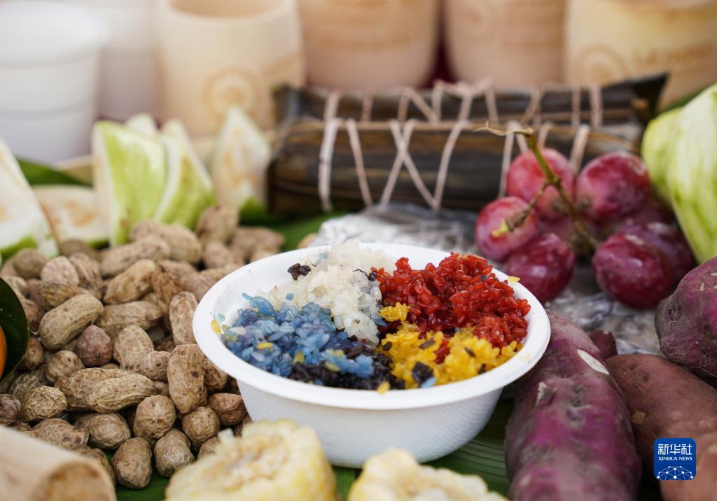 這是4月23日在海南省樂(lè )東黎族自治縣拍攝的苗族五色飯。
