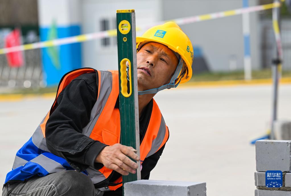 4月24日,建筑工人在參加職業(yè)技能比拼。