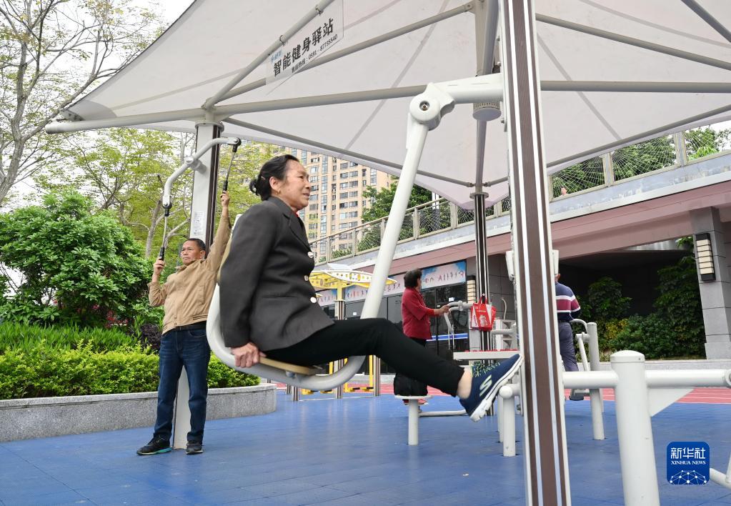 4月24日,市民在福州市鼓樓區西河智慧體育公園內的健身驛站鍛煉。