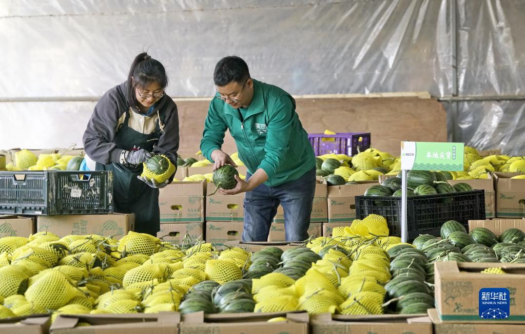 當日,北京市大興區龐各莊鎮政府和電商平臺聯(lián)合舉行了“頭茬西瓜上市 電商助力增收”的上市發(fā)車(chē)儀式,3000多個(gè)凌晨采摘的頭茬西瓜通過(guò)冷鏈運輸送到消費者手上。位于北京南部的龐各莊鎮是我國北方著(zhù)名的西瓜產(chǎn)銷(xiāo)區。近年來(lái),龐各莊鎮大力發(fā)展電商平臺直銷(xiāo)西瓜,并建設了西瓜種產(chǎn)銷(xiāo)溯源系統,助力提高瓜農收入。