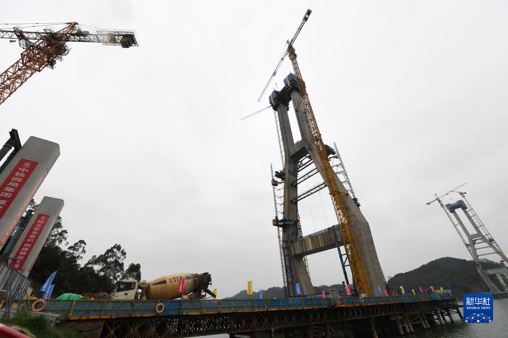 廣西:上橫高速公路西津郁江特大橋主塔封頂
