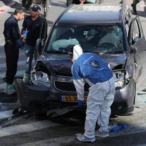 4月24日,警察在耶路撒冷駕車(chē)襲擊事件現場(chǎng)工作。