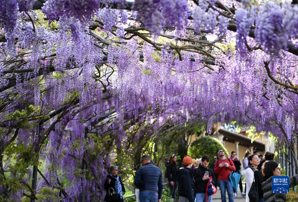 意大利佛羅倫薩巴爾迪尼花園近日紫藤花盛放,吸引眾多游客前來(lái)觀(guān)賞。