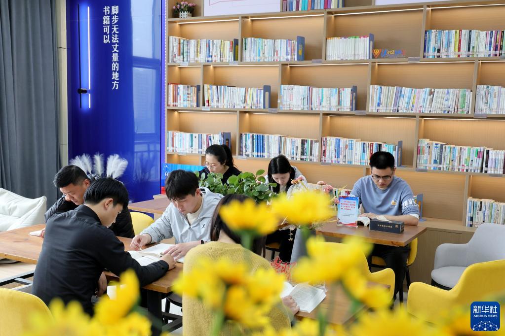 4月24日,讀者在山東省臨沂市臨沭縣城市書(shū)房閱讀。