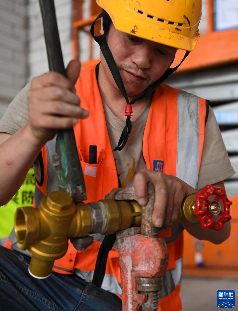 4月25日,在深圳前海泰康國際醫院項目工地,建筑工人參加閥門(mén)組裝工藝技能比拼。