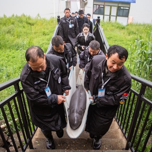 當日,來(lái)自長(cháng)江天鵝洲故道的4頭遷地保護長(cháng)江江豚分批順利放歸進(jìn)入長(cháng)江干流新螺和石首江段。這是我國首次開(kāi)展遷地保護長(cháng)江江豚野化放歸工作,此舉對促進(jìn)長(cháng)江江豚自然種群數量回升,推動(dòng)長(cháng)江江豚保護技術(shù)發(fā)展具有重要意義。