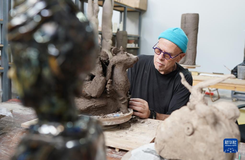 托爾斯滕·尤雷爾在江西景德鎮陶溪川陶瓷文化創(chuàng )意園自己的工作室內創(chuàng )作(4月20日攝)。