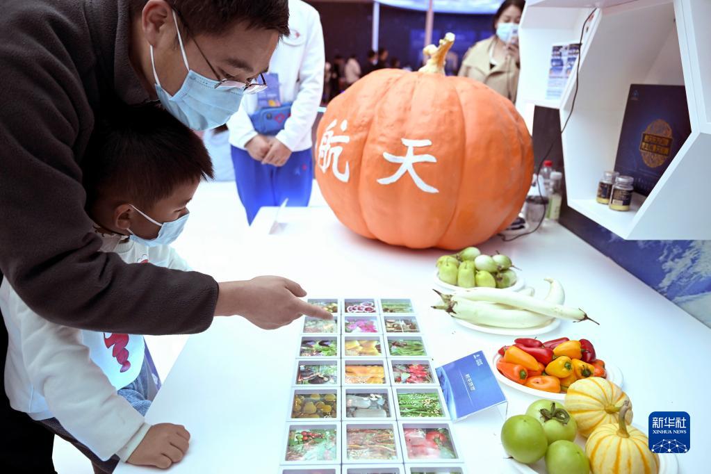4月24日,觀(guān)眾在科普展區了解航天蔬菜。