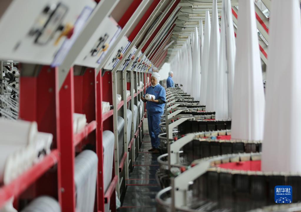 4月25日,在山東省臨沂市臨沭縣一塑編企業(yè)車(chē)間,工人加工塑編產(chǎn)品。