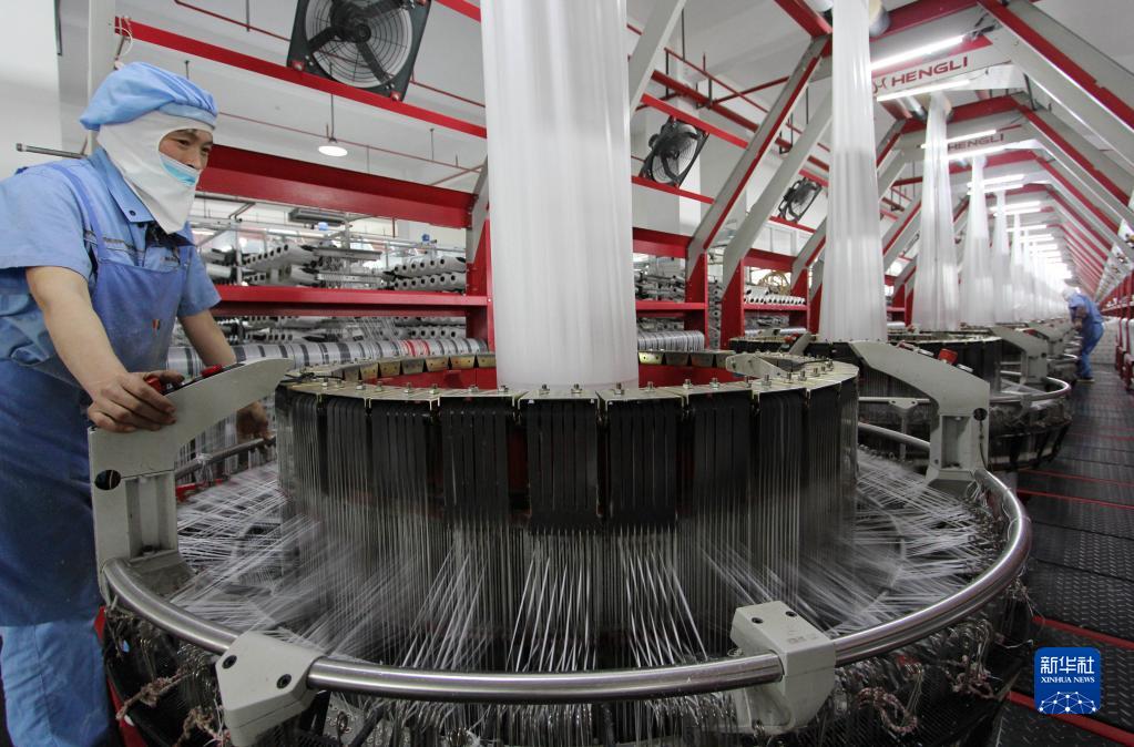 4月25日,在山東省臨沂市臨沭縣一塑編企業(yè)車(chē)間,工人加工塑編產(chǎn)品。