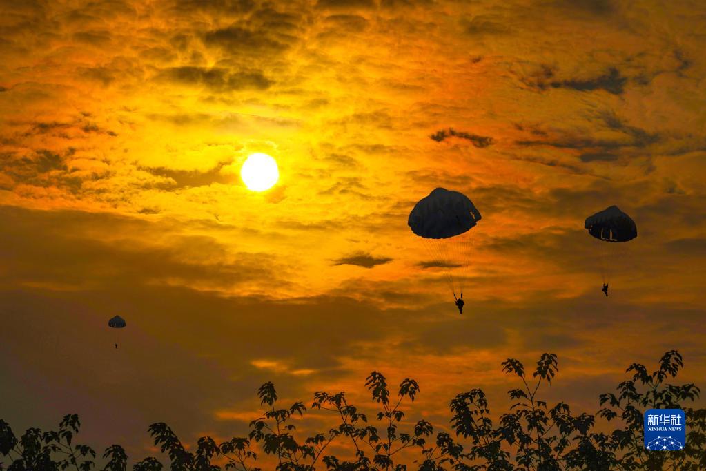 東部戰區陸軍第72集團軍某特戰旅特戰八連組織官兵進(jìn)行傘降實(shí)跳訓練(2022年9月26日攝)。新華社發(fā)(胡雪峰 攝)