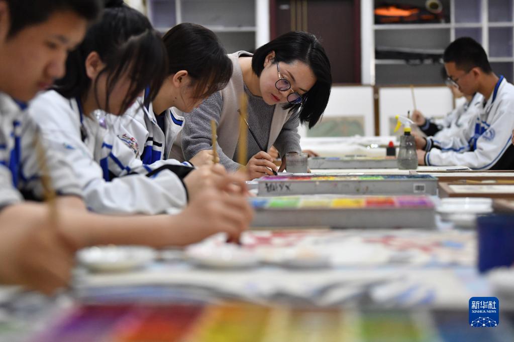 近年來(lái),甘肅省敦煌市敦煌中學(xué)將敦煌壁畫(huà)藝術(shù)引入校園,整合專(zhuān)業(yè)師資力量,通過(guò)美術(shù)課堂、社團活動(dòng)和主題實(shí)踐的方式,加強學(xué)生對敦煌壁畫(huà)藝術(shù)的了解,讓有興趣的學(xué)生在校園里開(kāi)展壁畫(huà)臨摹和藝術(shù)創(chuàng )作,豐富校園文化生活,讓學(xué)生感受敦煌文化的魅力。