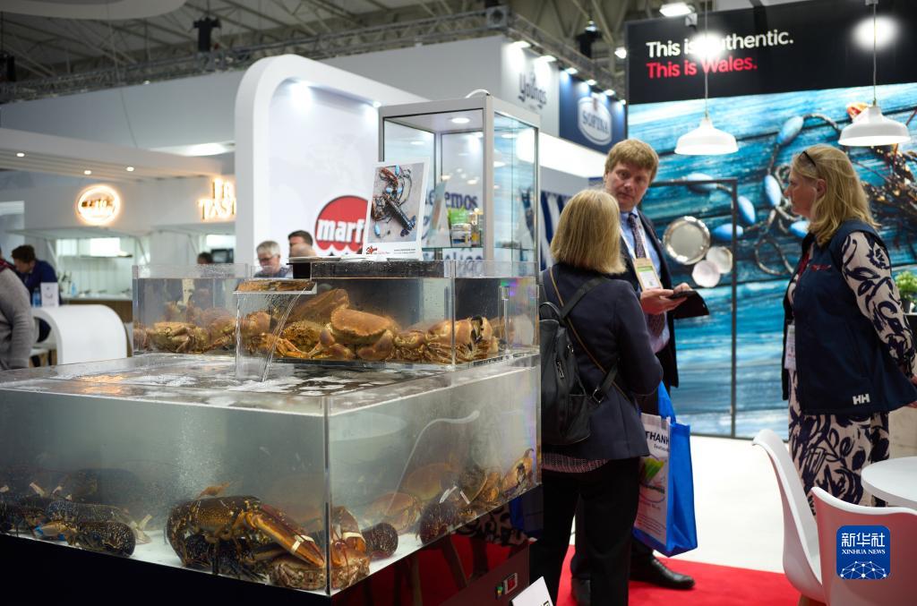 這是4月25日在西班牙巴塞羅那拍攝的全球水產(chǎn)品博覽會(huì )現場(chǎng)。