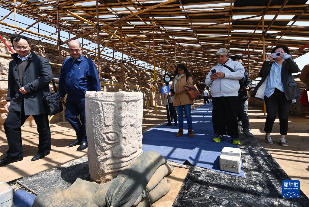 4月26日,外賓在陜西石峁遺址皇城臺遺址參觀(guān)調研。