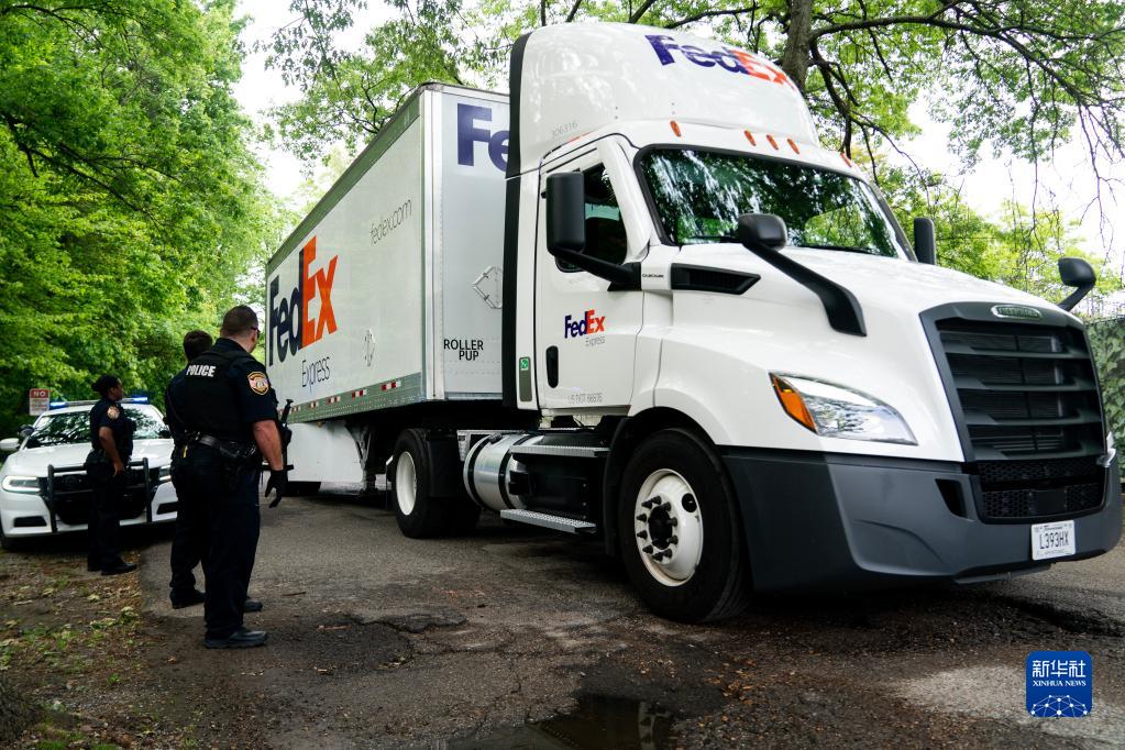 4月26日,在美國田納西州孟菲斯,運送大熊貓“丫丫”的車(chē)隊駛離孟菲斯動(dòng)物園,前往機場(chǎng)。