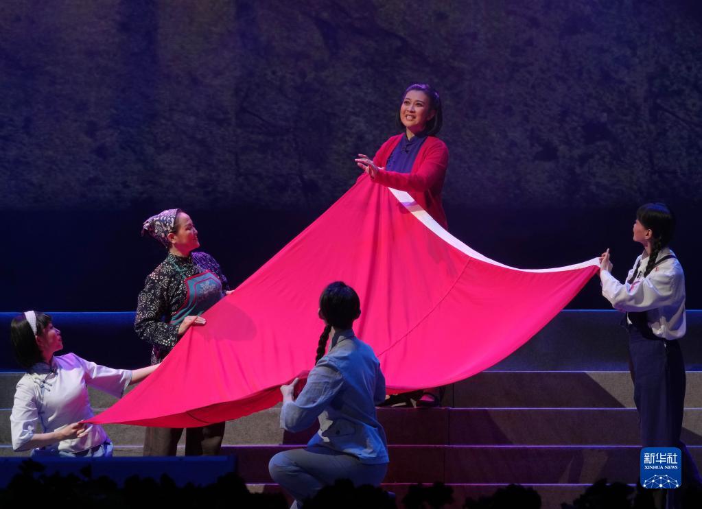 4月26日,吉林省戲曲劇院的演員在開(kāi)幕式演出現場(chǎng)表演吉劇《江姐》選段。