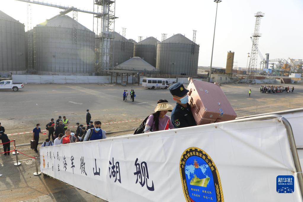 當地時(shí)間4月26日,中國海軍導彈驅逐艦南寧艦、綜合補給艦微山湖艦緊急駛赴蘇丹,執行撤離我在蘇丹人員任務(wù)。這是撤離人員登上微山湖艦。