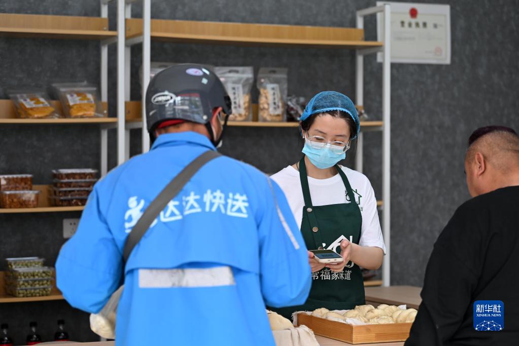 4月27日,快遞小哥在星火驛站購買(mǎi)食物。