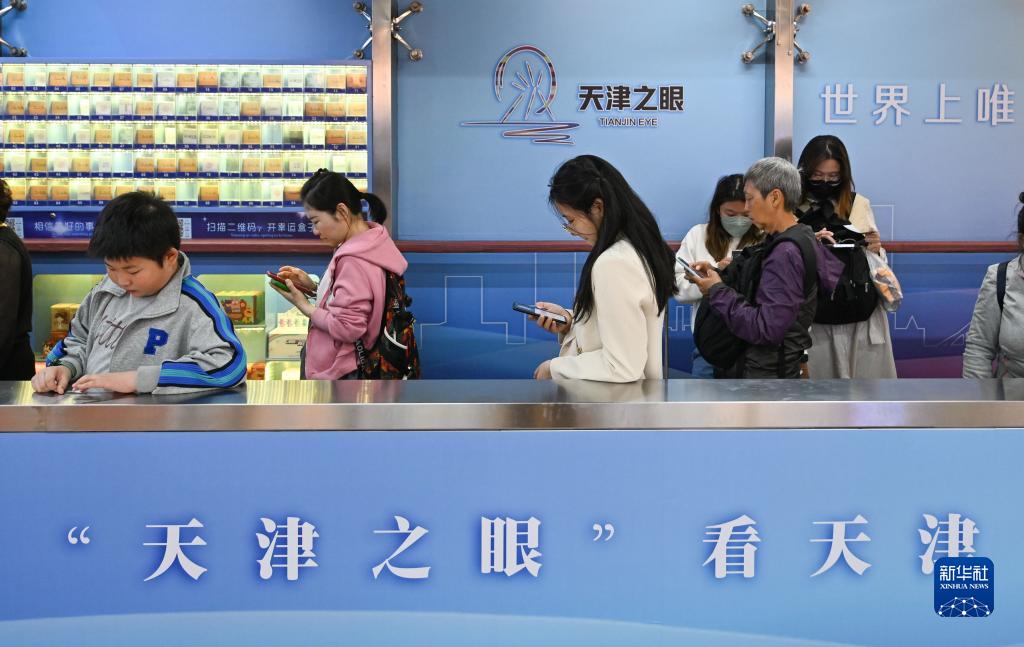 4月27日,游客排隊等待乘坐“天津之眼”摩天輪。