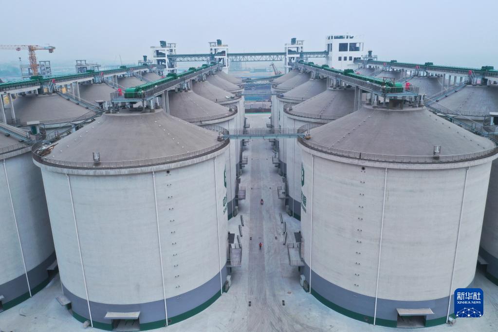 中央儲備糧秦皇島直屬庫有限公司海港糧食儲備基地項目一期(4月28日攝,無(wú)人機照片)。