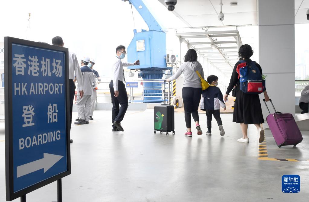 4月28日,旅客在廣州琶洲港澳客運碼頭準備乘船前往香港國際機場(chǎng)。