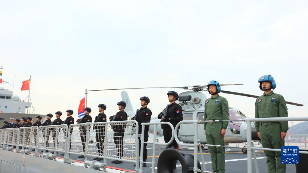 4月28日,中國海軍第44批護航編隊從浙江舟山某軍港解纜起航,隨艦機組、特戰隊員在甲板整齊列隊。
