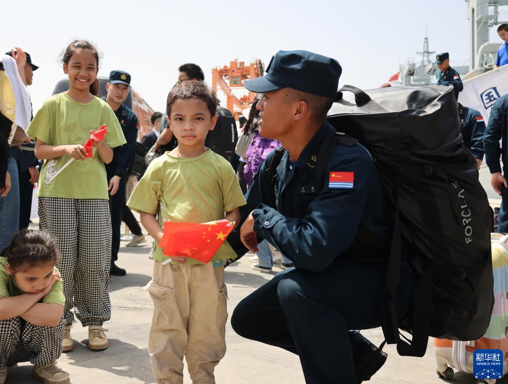 4月27日,從蘇丹撤離人員乘坐中國海軍軍艦抵達沙特阿拉伯吉達港。