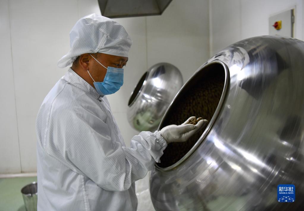 普窮次仁在檢查藏藥制丸工序(4月20日攝)。