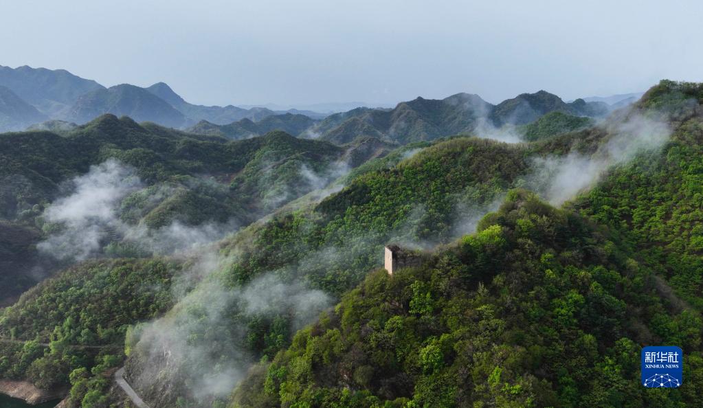 4月28日在河北省遷西縣漢兒莊鎮太陽(yáng)峪村北拍攝的長(cháng)城(無(wú)人機照片)。