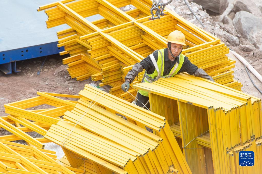 4月28日,工人在成達萬(wàn)高速鐵路建設現場(chǎng)作業(yè)。