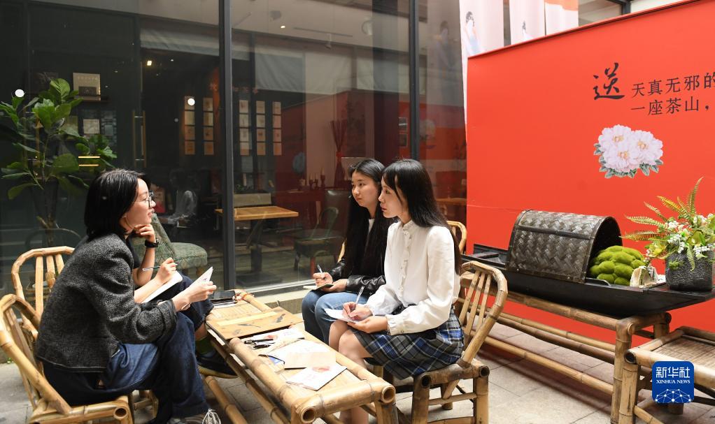 4月28日,浙江省湖州市吳興區愛(ài)山街道文化站的工作人員(右一、右二)與書(shū)店負責人商議“五一”期間讀書(shū)活動(dòng)安排。