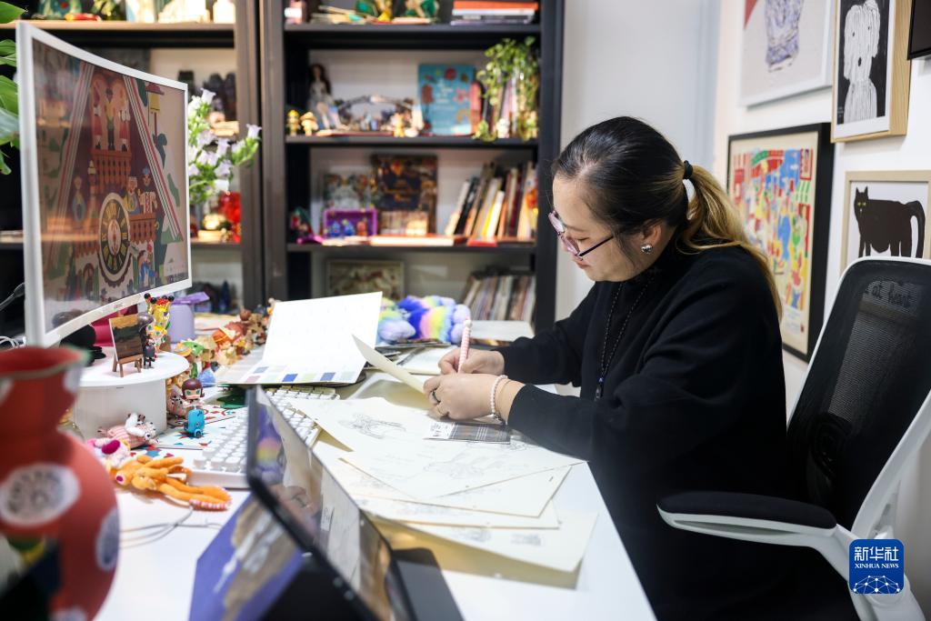 4月25日,劉思蔚在位于廣西桂林的工作室內創(chuàng )作。