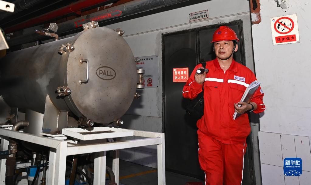 胡誠在位于海南儋州洋浦經(jīng)濟開(kāi)發(fā)區的中海海南發(fā)電有限公司廠(chǎng)區內進(jìn)行檢查(4月20日攝)。