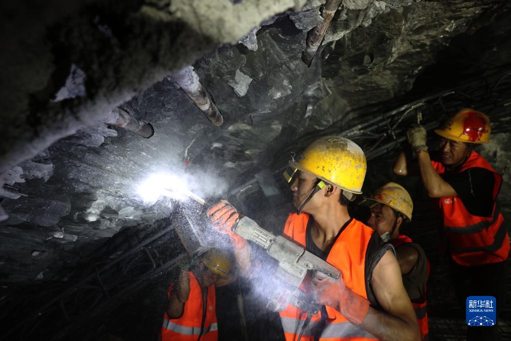 4月29日,中鐵八局工人在渝湘高鐵重慶黔江段姚家院子隧道施工。