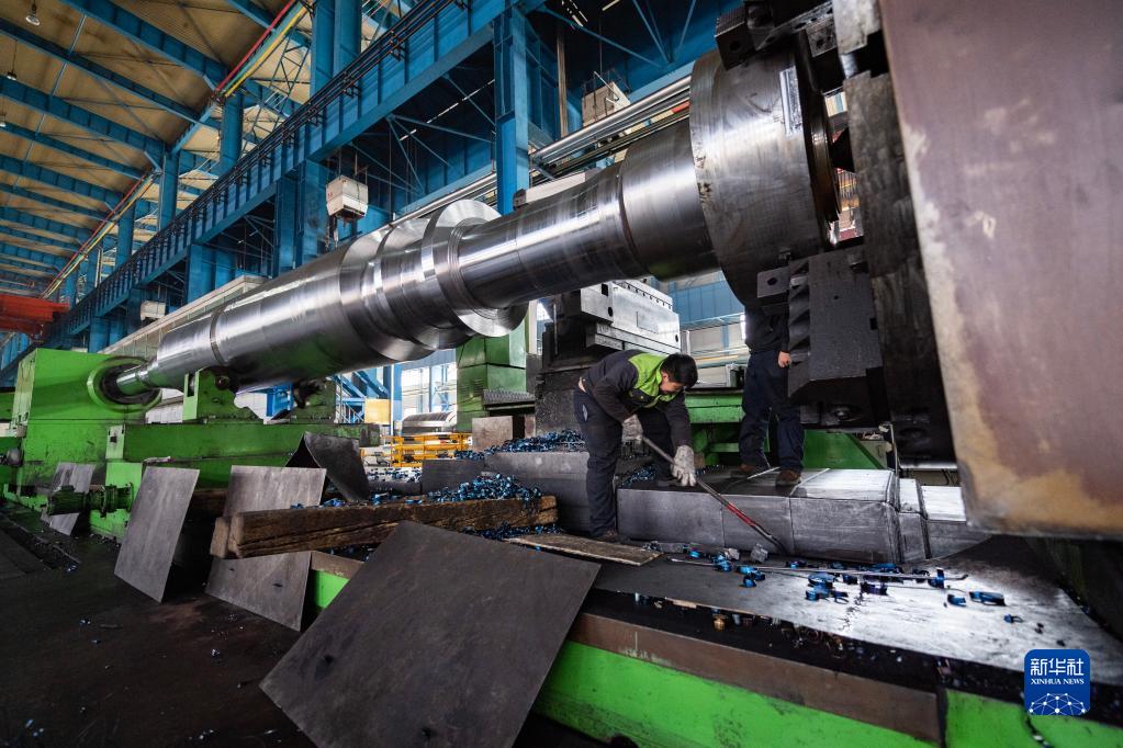 在位于黑龍江省齊齊哈爾市的中國一重集團有限公司生產(chǎn)車(chē)間,工人進(jìn)行生產(chǎn)作業(yè)(4月18日攝)。