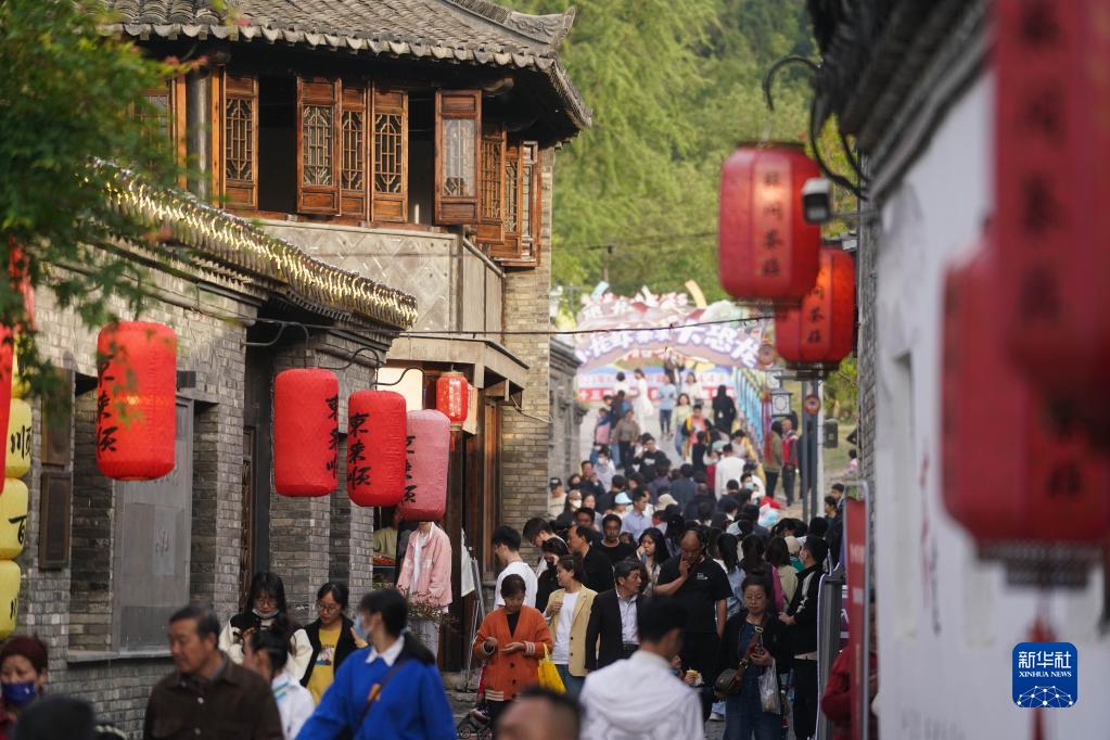 4月29日,市民和游客在盱眙縣第一山歷史文化街區游玩。