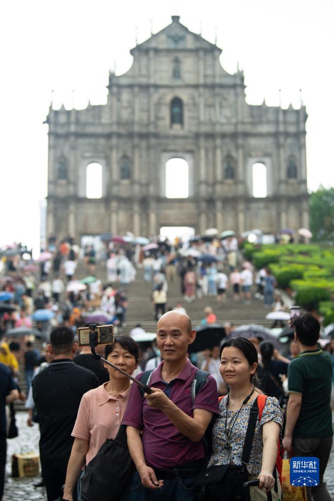 當日是“五一”假期第一天,澳門(mén)議事亭前地、大三巴牌坊等景點(diǎn)游客如潮。