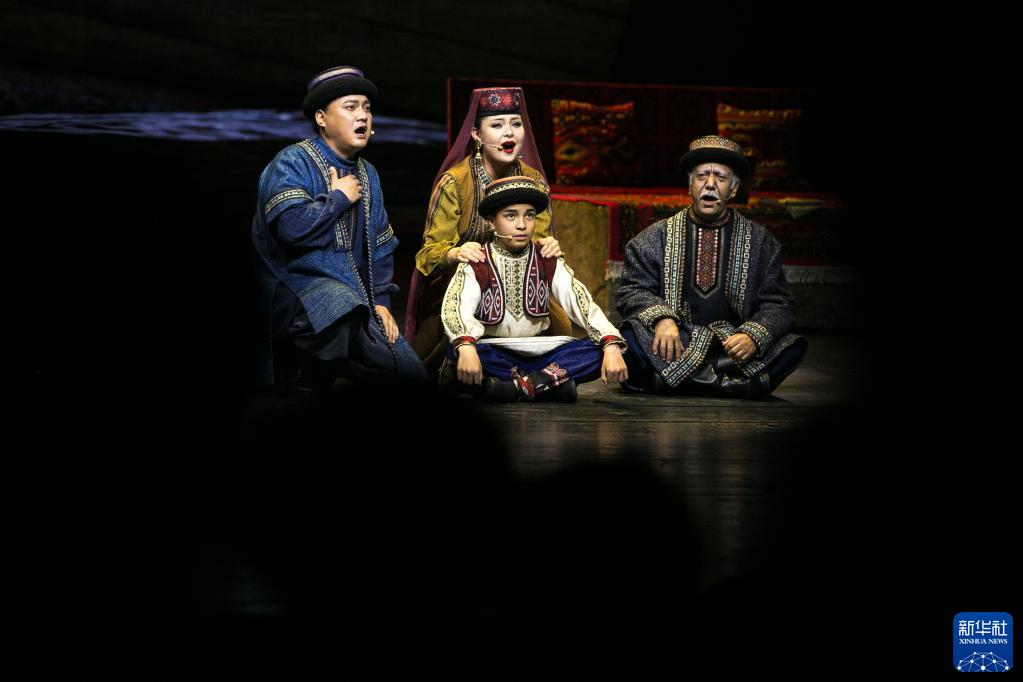 4月29日,在北京保利劇院,演員在音樂(lè )劇《拉齊尼·巴依卡》第一幕《帕米爾少年》中表演。