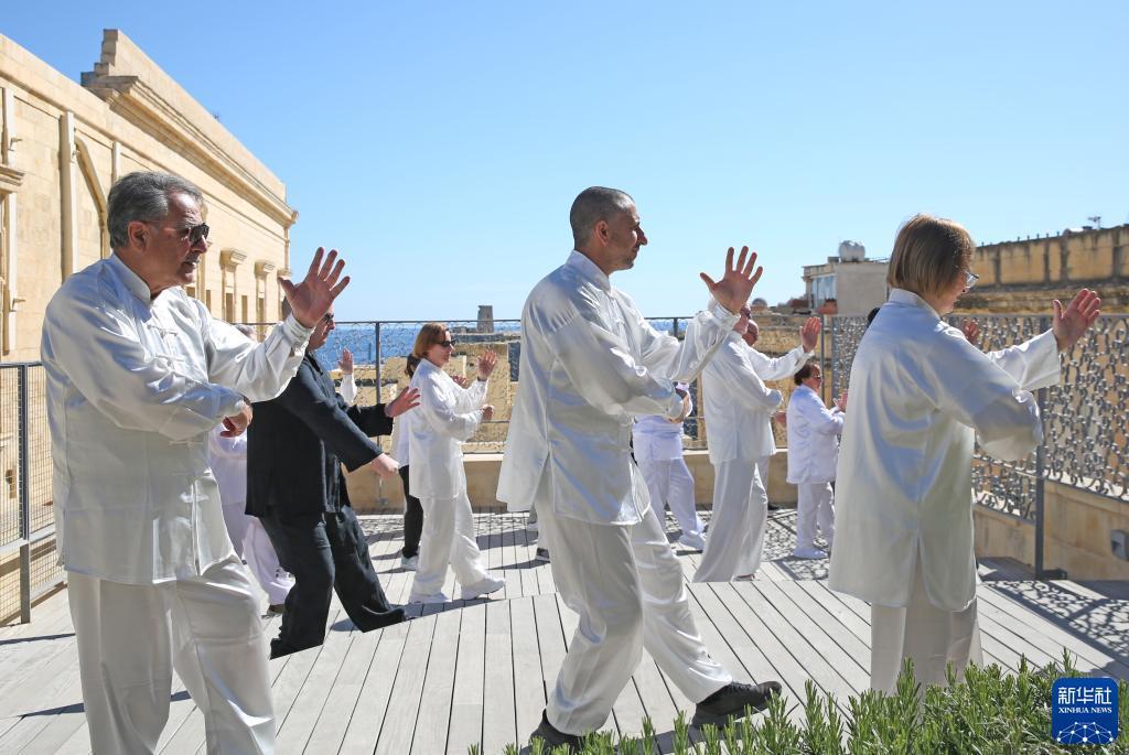 4月29日,在馬耳他瓦萊塔,當地太極愛(ài)好者打太極拳。