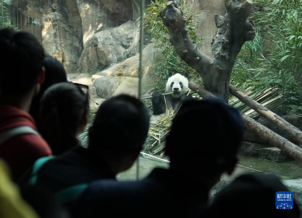4月30日,游客在北京動(dòng)物園大熊貓館觀(guān)賞大熊貓。