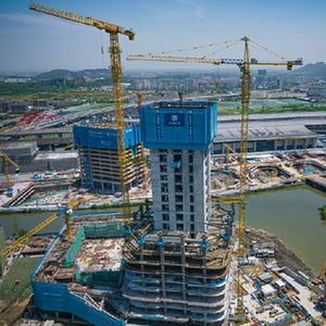 4月30日,中建三局建設者在浙江紹興北站TOD綜合交通樞紐工程建設現場(chǎng)工作。