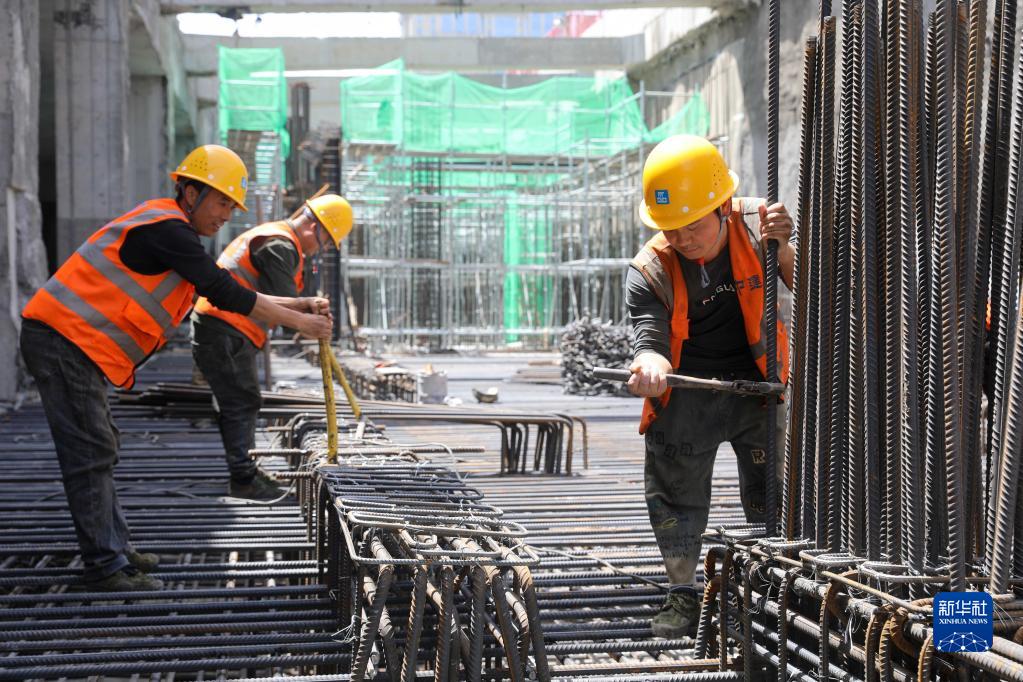 4月30日,中建五局工人在安徽省合肥市軌道交通7號線(xiàn)工地作業(yè)。