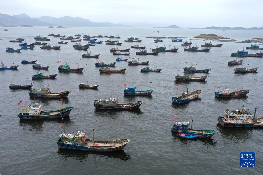 4月30日,準備休漁的漁船停泊在福建省福州市連江縣苔菉鎮北茭村漁港(無(wú)人機照片)。