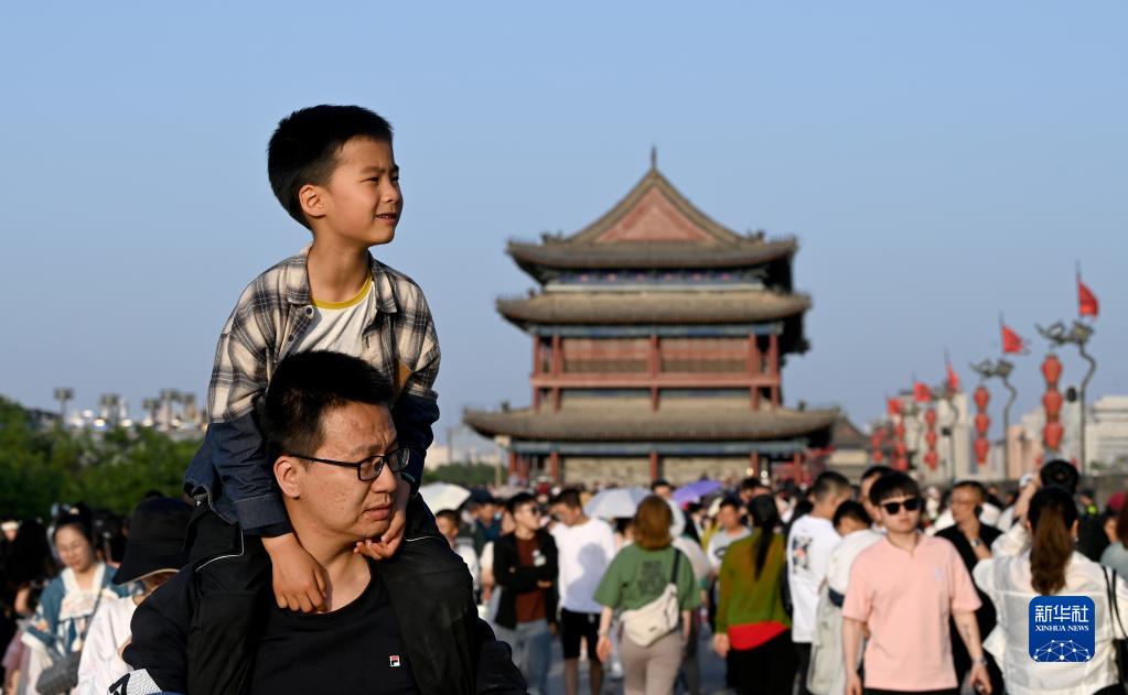 西安城墻景區“五一”旅游火熱