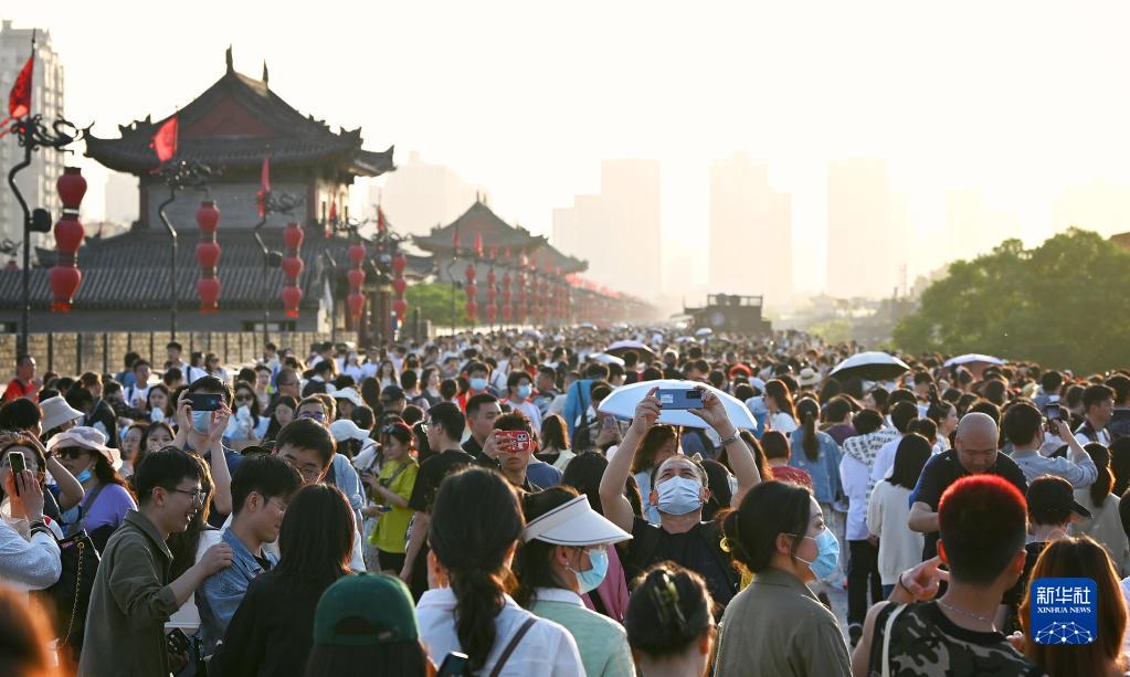 4月30日,游客在西安城墻景區參觀(guān)游覽。