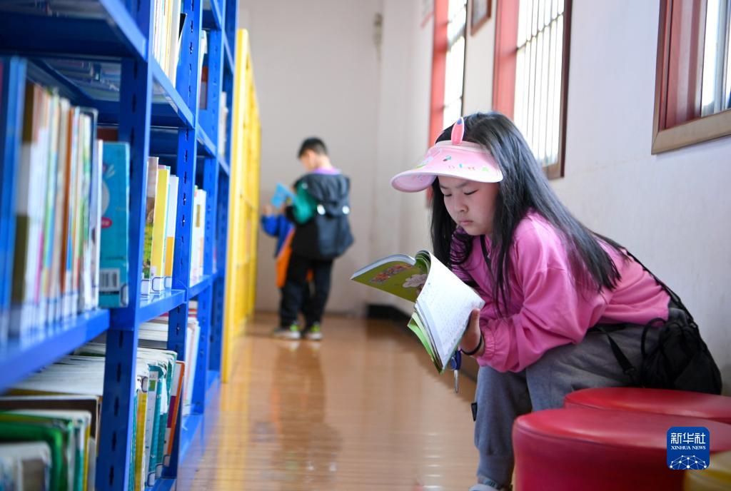 5月1日,小朋友們在河南省平頂山市郟縣圖書(shū)館閱讀。