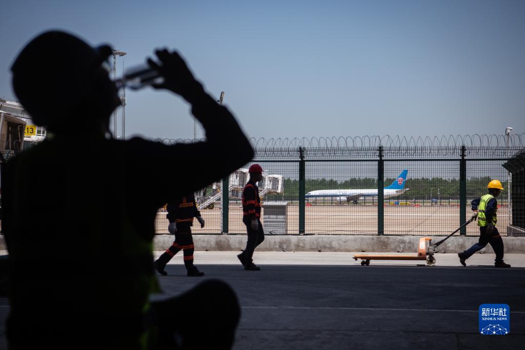 5月1日,在中建三局承建的武漢天河機場(chǎng)T2航站樓改造工程項目工地,工人在作業(yè)間隙休息。