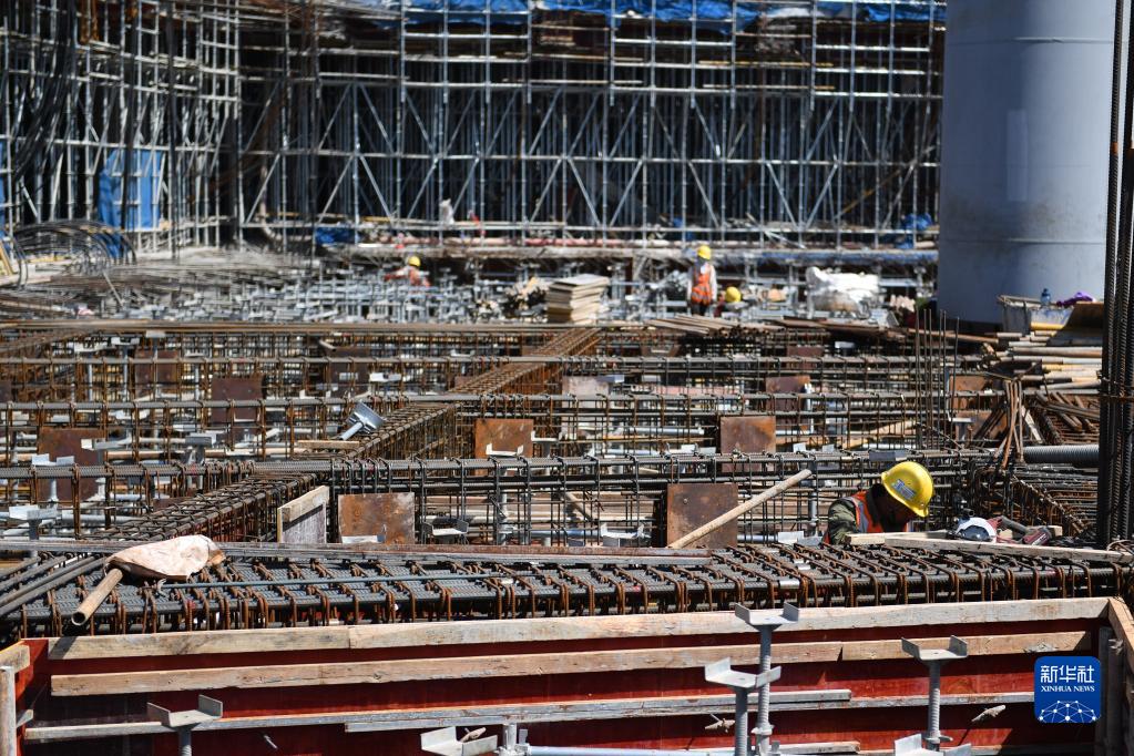 5月1日,中建八局的施工人員在長(cháng)沙機場(chǎng)改擴建工程T3航站樓工程項目現場(chǎng)作業(yè)。