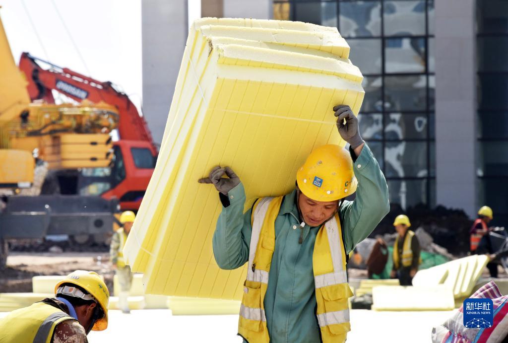 5月1日,中建八局四公司的工人在山東省青島市高新區康復大學(xué)項目工地施工。